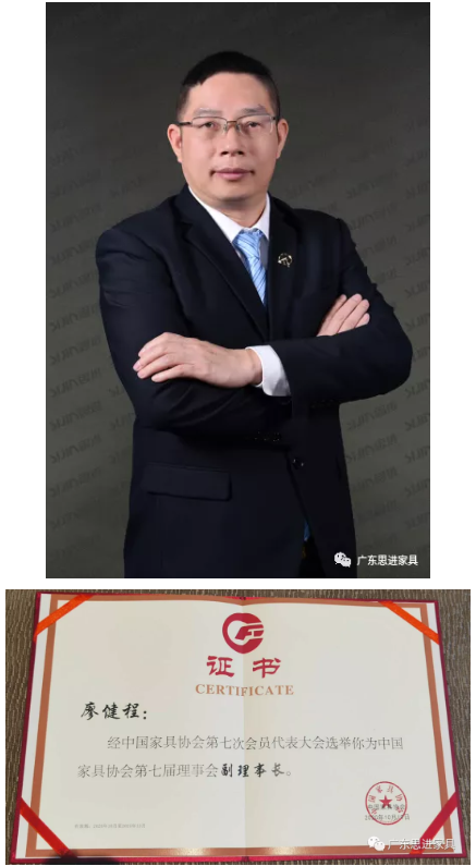 本次大會上,思進家具憑借過硬的品牌實力,思進董事長兼創(chuàng)始人廖健程先生榮幸當選為“中國家具協(xié)會副理事長”,思進家具再一次以實力,印證了其在品牌、產品、服務等方面的行業(yè)地位和創(chuàng)新精神。