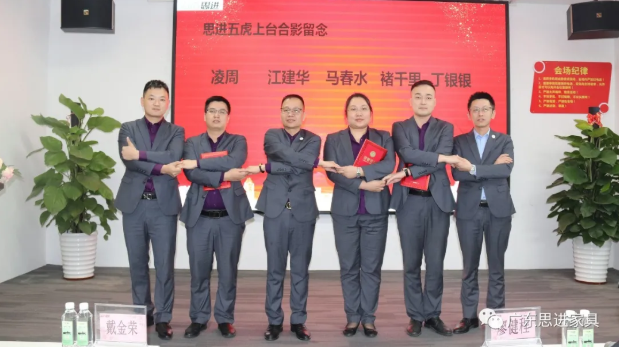 ?思進(jìn)品牌總經(jīng)理戴金榮與“銷(xiāo)售五虎”手牽手、心連心,共同展望未來(lái)